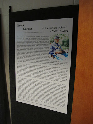The paintings are on display outside the Fallen Warrior Memorial Auditorium in the main building at Ike Skelton Training Site. Several classes from Lincoln University stopped in and viewed the display and got a special treat - Garner was on hand and talked about the exhibit and how it developed. A student at the showing, Johnell McGee, a senior at the University studying studio art, talked about his observations following the exhibit.